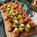 Deliciosas brochetas de verduras y carne marinadas, perfectas para compartir en reuniones.