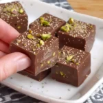 A continuación, toma una cubetera de hielo o un molde de silicona. En el fondo, coloca un poco de pistachos tostados y picados, que añadirán un toque especial a tus bocaditos. Luego, rellena con la mezcla de chocolate y quinoa, asegurándote de que cada uno esté bien compactado.
