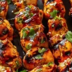 Deliciosas brochetas de muslos de pollo marinado y cubiertas con una irresistible salsa Bang Bang, perfectas para una cena rápida.