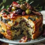 Un cake salado fácil de preparar, perfecto como aperitivo o cena ligera, lleno de sabor con queso, tocino y aceitunas.