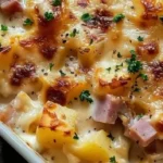 - En un bol grande, mezcla las papas, el jamón, la cebolla y la crema fresca. Asegúrate de que todo esté bien cubierto. Piense en ello como un abrazo calido para todas tus ingredientes.