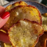 Deliciosas y saludables chips de patata al horno, crujientes y fáciles de preparar, perfectas para compartir.