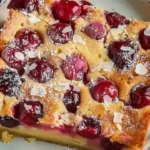 - Esparce las cerezas uniformemente en el fondo del molde preparado.