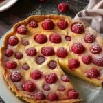 Un delicioso y fácil clafoutis de frambuesas que combina la textura de un pastel con la suavidad de un flan.