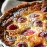 - Hornea durante 35-40 minutos, hasta que el clafoutis esté dorado y ligeramente inflado.