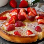 Un delicioso y fácil clafoutis de fresas que combina frutas y leche en un postre sencillo y satisfactorio.