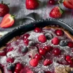 Un postre ligero y delicioso de clafoutis con frutas rojas, fácil de preparar y perfecto para cualquier ocasión.