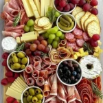 - Distribuye los embutidos de manera atractiva alrededor de los quesos.