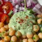 - Aliñar la ensalada: Vierte el aliño sobre la mezcla de garbanzos y verduras y mezcla suavemente.