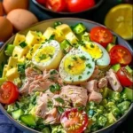 Una deliciosa ensalada de atún con huevo, perfecta para un almuerzo ligero o una cena rápida.