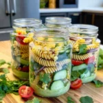 Una deliciosa y saludable ensalada de pasta, perfecta para preparar comidas durante la semana, cargada de ingredientes frescos y nutritivos.
