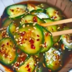 Una ensalada refrescante y deliciosa que combina pepinos y sabores asiáticos, ideal como acompañamiento o snack saludable.