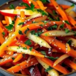 Una ensalada fresca y deliciosa que combina manzanas y zanahorias con un toque de nueces y yogur.
