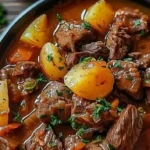 Además, es un plato que grita "cálido y acogedor". Después de un largo día, solo quieres algo reconfortante, y créeme, este estofado es justo eso. Así que prepárate para abrazar ese tazón de delicias mientras te sientas en tu sofá y te relajas. Y lo mejor de todo es que puedes tener listas las sobras para el almuerzo del día siguiente. Este estofado no es solo una comida; es una inversión de felicidad a largo plazo.