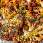 Deliciosos filetes de coliflor asados o a la parrilla, perfectos como acompañamiento o plato principal.