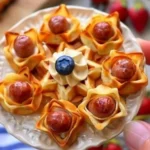 Deliciosas y crujientes flores de obleas rellenas de salchichas, perfectas para compartir en reuniones.