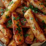 Deliciosas fritas de manzana crujientes, perfectas como aperitivo o postre, hechas en freidora de aire para una opción más saludable.