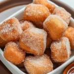 Sirve estos deliciosos bocaditos de churro calientes, espolvoreados con la mezcla de azúcar y canela. Puedes acompañarlos con chocolate derretido o salsa de caramelo para un toque extra. También son perfectos solos, ideales para un antojo dulce.