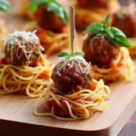 Mini espaguetis y albóndigas son una opción perfecta para cualquier reunión o fiesta. Son fáciles de hacer, divertidos de comer y siempre sorprenden a tus invitados. Además, estos aperitivos son muy sabrosos y combinan la textura suave de la pasta con la jugosidad de las albóndigas, creando un bocado delicioso. ¡No hay mejor manera de disfrutar un clásico de la cocina italiana en miniatura!