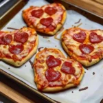 Mini pizzas en forma de corazón, perfectas para celebraciones o un almuerzo especial. Personalizables y fáciles de hacer.