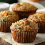 Muffins esponjosos y húmedos de zucchini y zanahoria, perfectos para desayunos y meriendas.