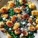 Disfruta de unos ñoquis cremosos con espinacas y feta, perfectos para una cena rápida y reconfortante.