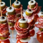 Divertidas y sabrosas brochetas de salami, ideales para Halloween y reuniones. Perfectas para un aperitivo que encanta a los niños.