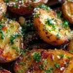 Crispy, golden potatoes infused with fresh garlic and topped with Parmesan cheese, all made effortlessly in an air fryer.