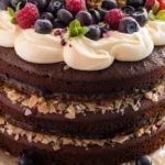 Keywords: pastel alemán, chocolate, coco, nueces, postre