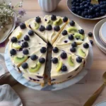 Un delicioso pastel de capas de arándano con queso mascarpone, perfecto para cualquier ocasión.