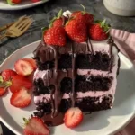 Keywords: pastel de chocolate, fresas, postre, receta de pastel, chocolate, mermelada de fresa