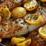 A simple yet delicious baked white fish dish with potatoes, seasoned and zesty.