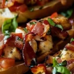 Una deliciosa receta fácil de pollo con bacon crujiente y tomates frescos, perfecta para una cena rápida.