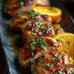 Delicioso pollo con un glaseado de naranja, ideal para una cena rápida y llena de sabor.