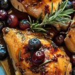 Una receta fácil y deliciosa de pollo jugoso cubierto con arándanos y romero.