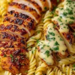 Ideas para servir Pollo cremoso con ajo y parmesano con pasta torcida con queso