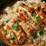 Un delicioso plato de pollo, queso y arroz que se hace en un solo sartén, perfecto para una cena rápida.