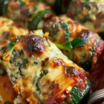 Deliciosos rollatini de calabacín rellenos de quesos cremosos y salsa marinara, perfectos para cenas familiares.