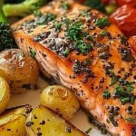 Disfruta de un delicioso Salmón al Ajo con verduras asadas que combina sabor y salud en un solo plato.