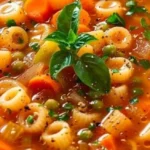 Una deliciosa y reconfortante sopa de pasta con verduras, perfecta para aquellos que buscan comodidad en la cocina sin complicaciones.