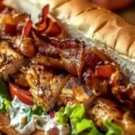 Un delicioso y fácil sándwich de pollo y tocino con aderezo ranch, perfecto para noches perezosas.