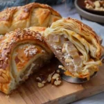 Deliciosa trenza de hojaldre que combina sabores dulces y salados con queso de cabra, dulce de membrillo y nueces.
